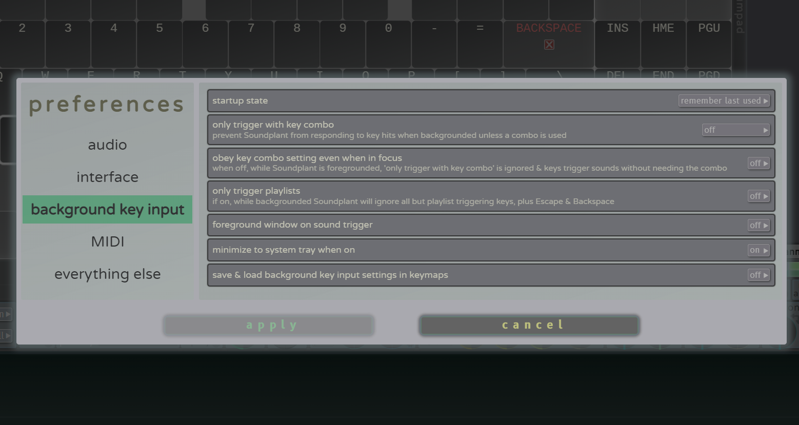 - MIDI input obeys ‘background key input’ setting